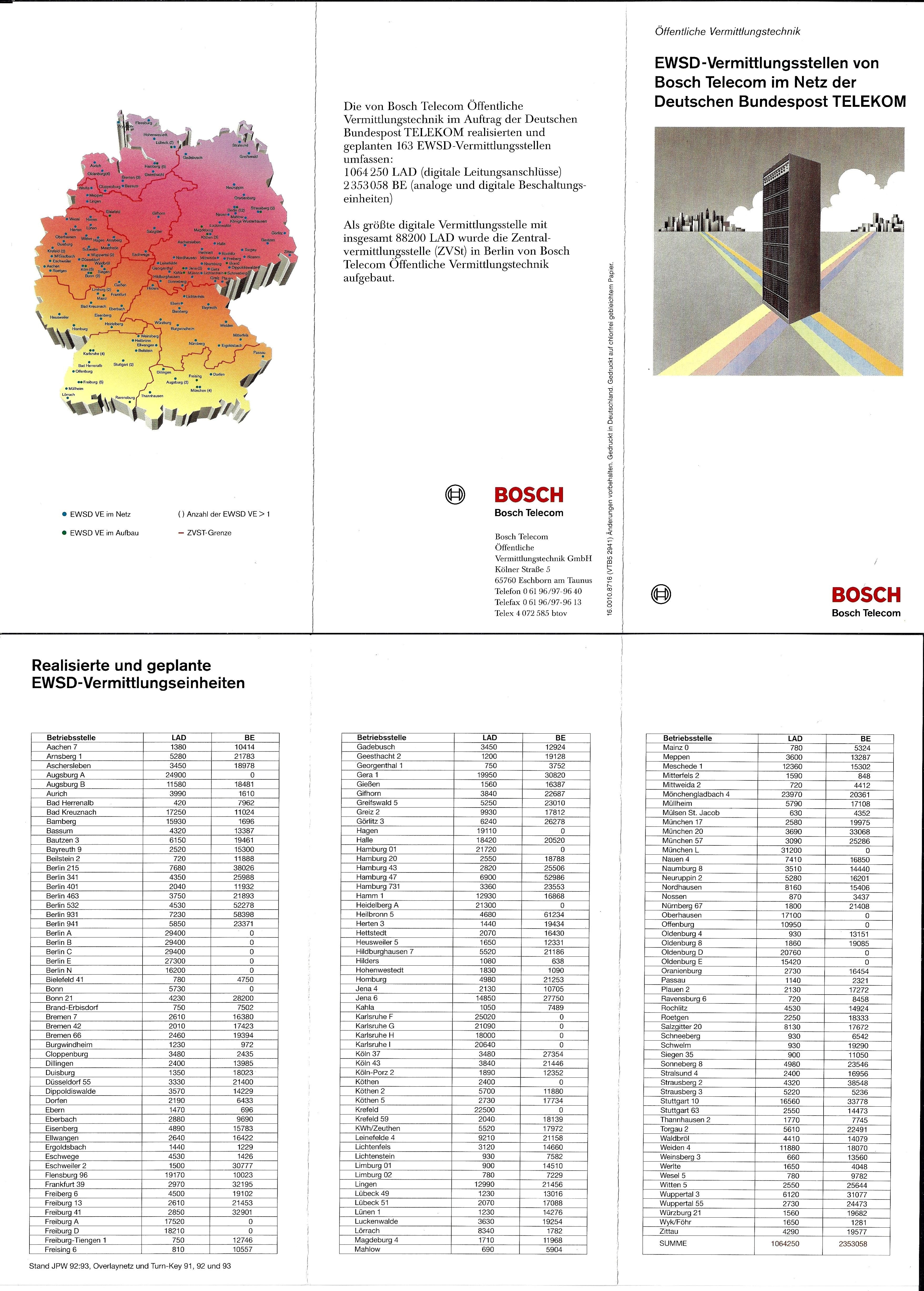 1992 EWSD-Vermittlungsstellen von Bosch-Telecom Ö