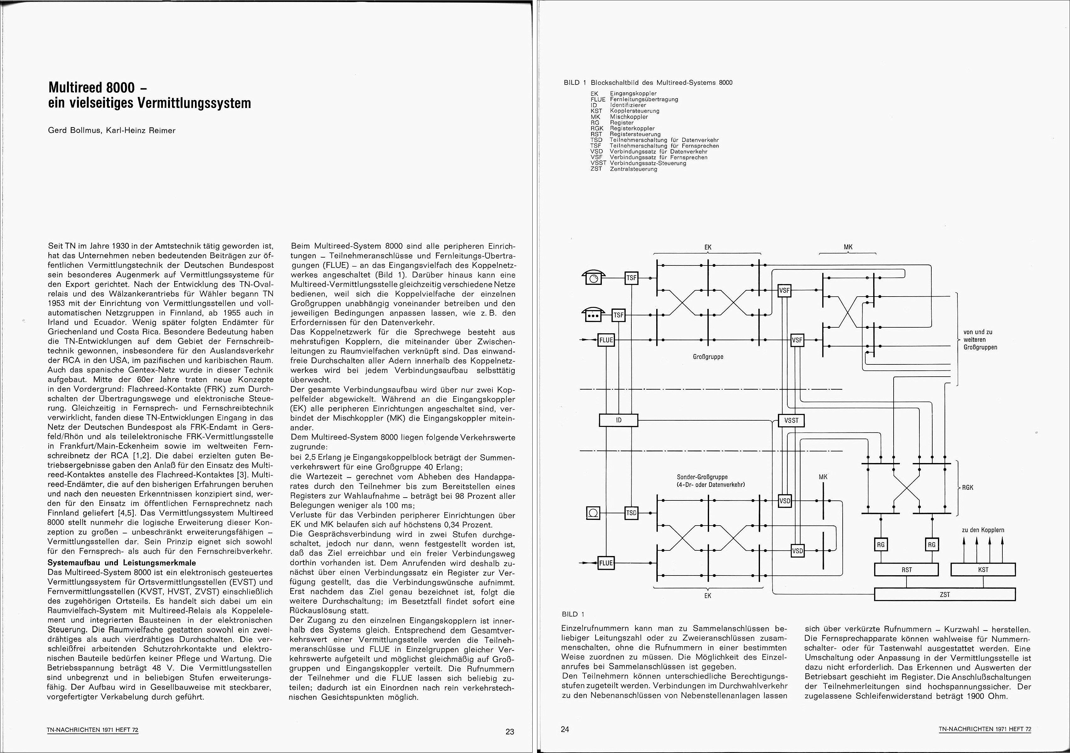 1971 Multireed 8000 - ein vielseitiges Vermittlungssystem