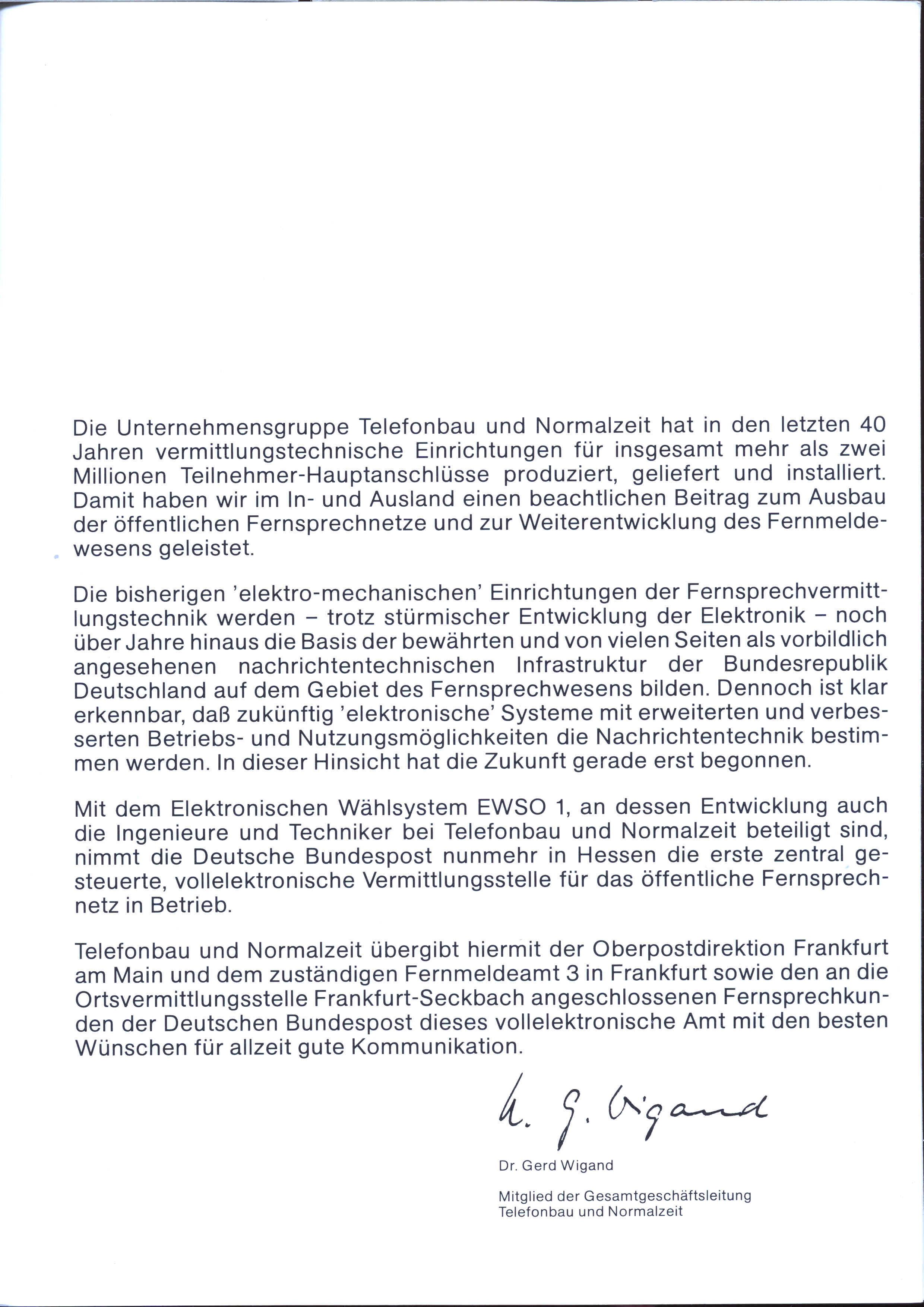 1978 Erste elektronische Fernsprech-Vermittlungsstelle (EWSO 1) in Hessen von TN