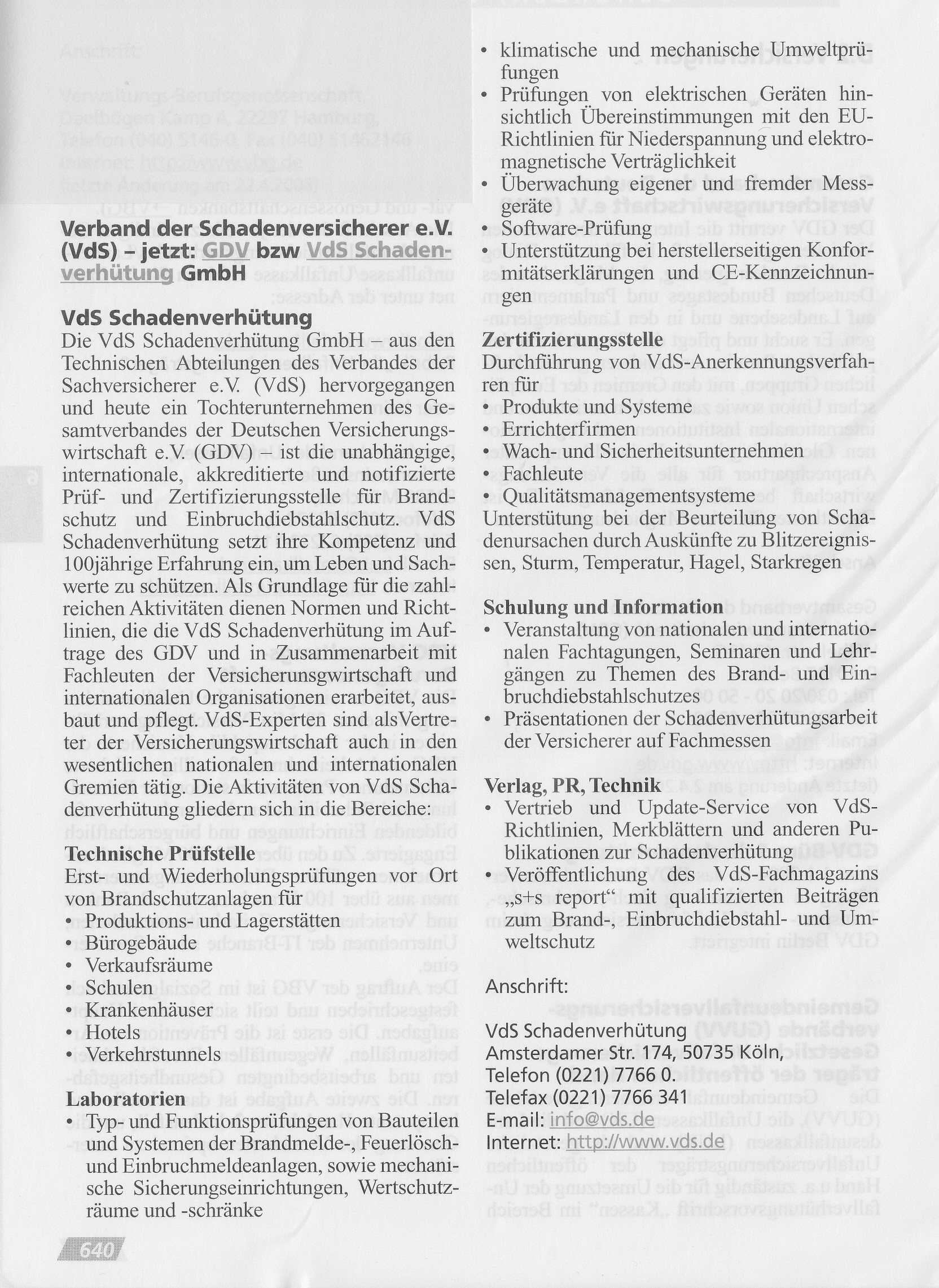 wachungsstelle. Während der Zeit des Nationalsozialismus wurden der Verband der privaten Feuerversicherer und der Verband der öffentlichen Feuerversicherer aufgelöst, während die Sprinklerprüfstelle bis 1944 ihre Arbeit weitgehend fortsetzen konnte. Nach einer kriegsbedingten Unterbrechung war es 1947 möglich, die Tätigkeit wieder aufzunehmen. Im Juni 1948 wurde die Prüfstelle in den neu gegründeten Verband der Sachversicherer e. V. (VdS) integriert.