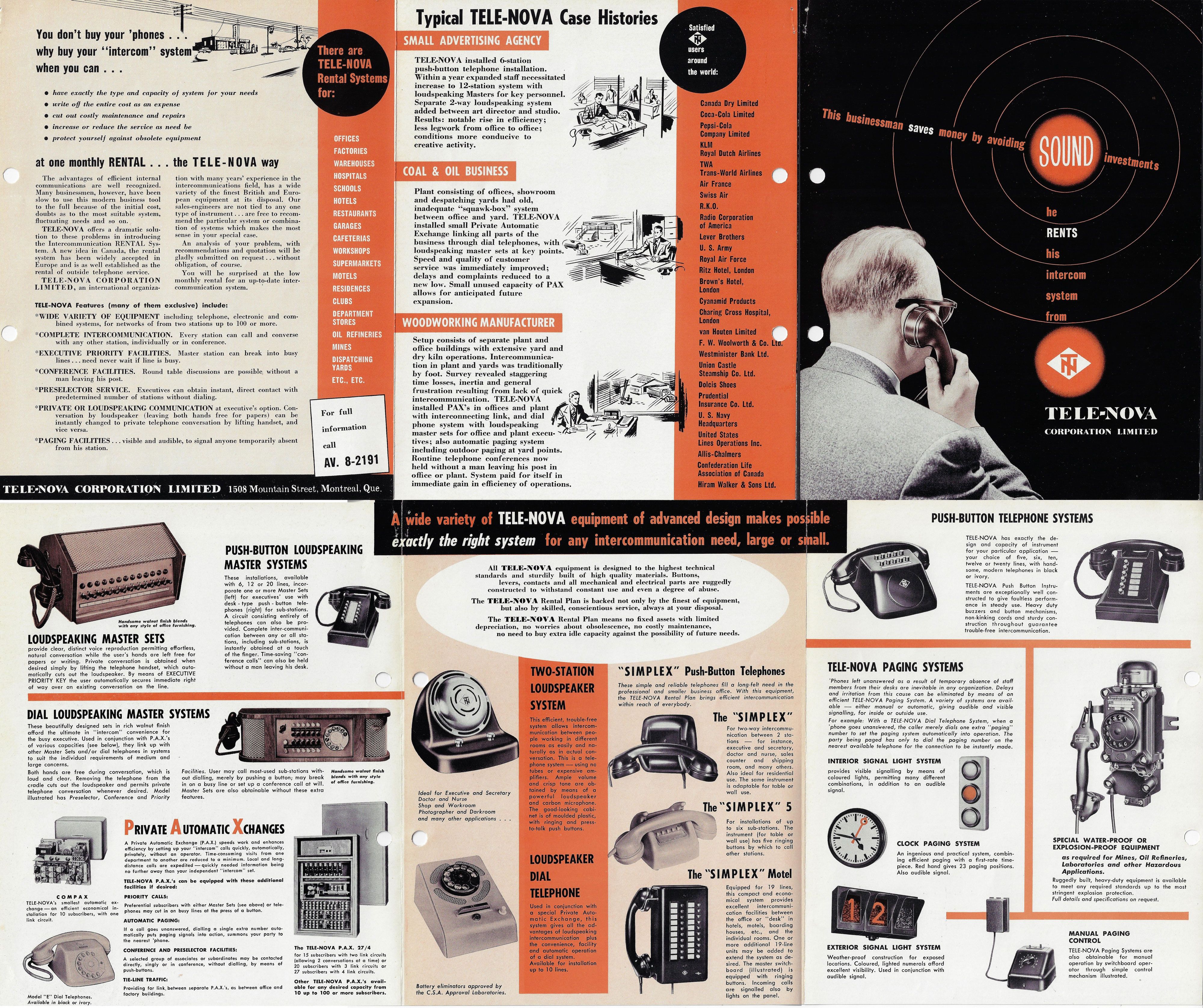 Im September 1954 wurde die erste Vertriebsgesellschaft von TN auf dem nordamerikanischen Kontinent, die TELE-NOVA Corporation Limited, Montreal, Kanada, gegründet, während in New York die TuN Gesellschaft Tele-Norm noch im Entstehen war.