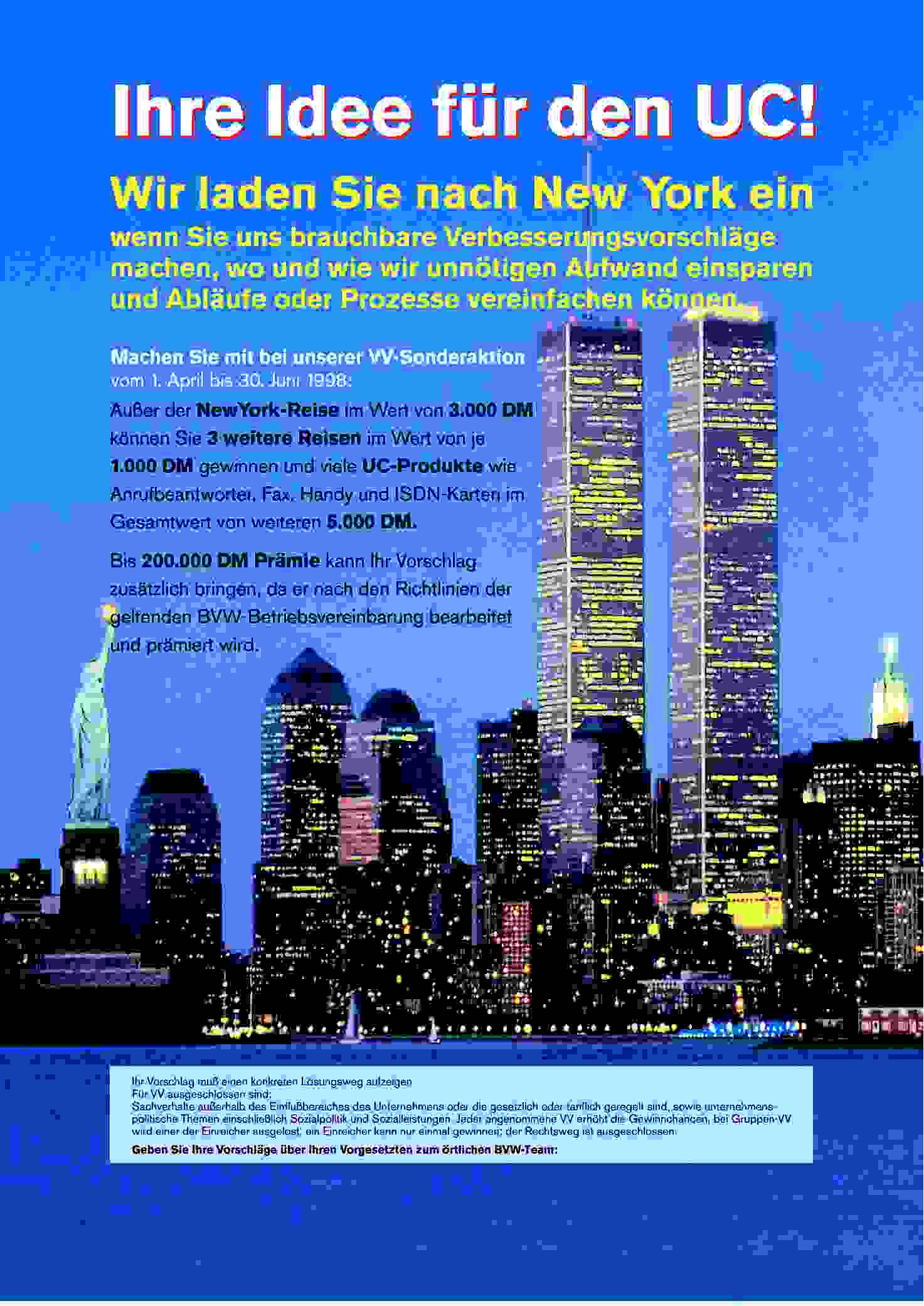 1999 wird in den einzelnen UC Bereichen der Direkt-VV eingeführt, um dem Vorgesetzten selbst die Möglichkeit zu geben, wertmäßig kleine Vorschläge seiner Mitarbeiter direkt zu honorieren um mit seiner Anerkennung Mitarbeitende (auch finanziell) weiter zu motivieren ( hier der Bearbeitungsablauf)